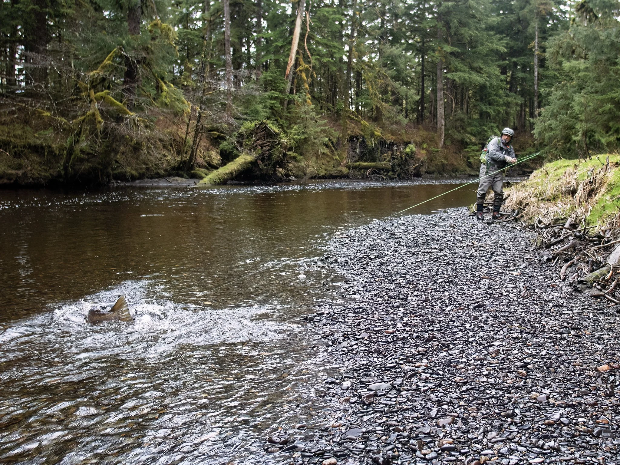 For a moment, there among the sobbing alders, questions gnaw. What if I’ve come all this way for nothing? What if the steelhead are not here, have never been here? Yet hope is at the heart of this sport, where each cast is a question, a defiant probing for truth. Besides, here alone in the maw of Alaska’s coastal wilderness, there’s no turning back.